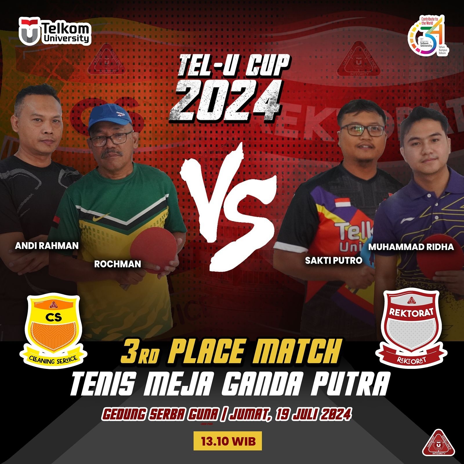 Hai TelUTizen, siapa yang akan menjadi pemenang juara 3 Tenis Meja Ganda Putra Tel-U CUP 2024 ?